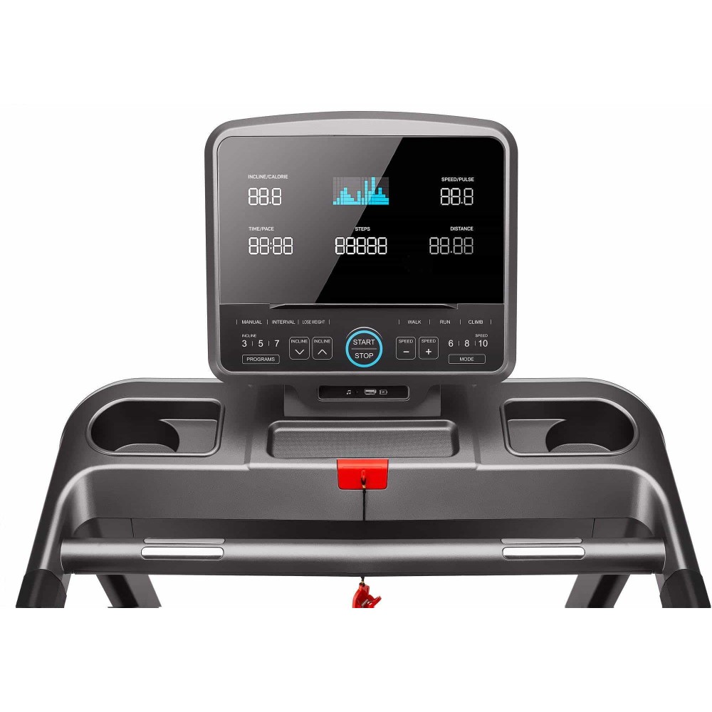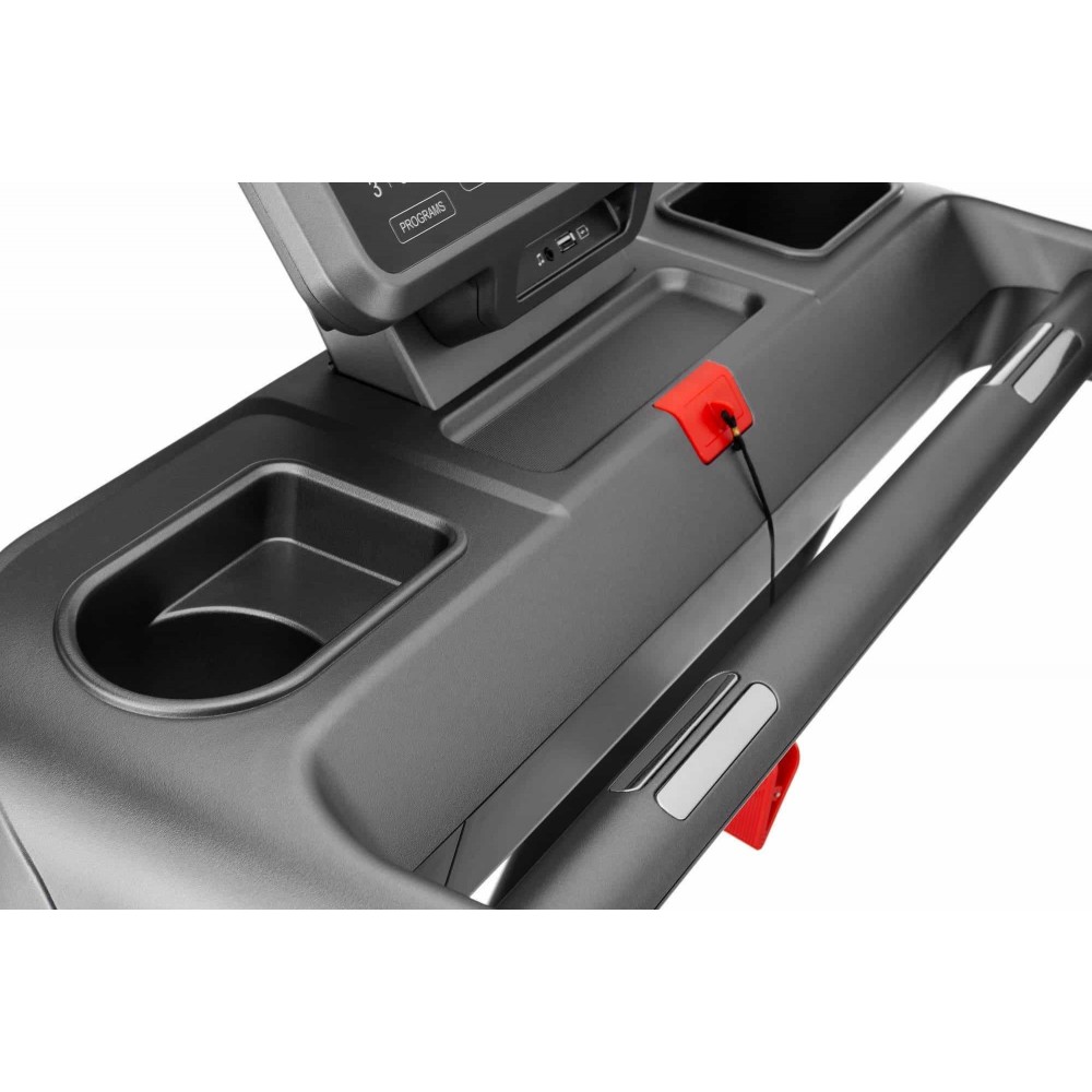 Безпека є пріоритетом при використанні бігової доріжки. Давачі вимірювання пульсу допомагають контролювати кардіонавантаження. Бігове полотно має антиковзку поверхню для безпечного тренування. Ключ безпеки дозволяє негайно зупинити тренажер у разі потреби.