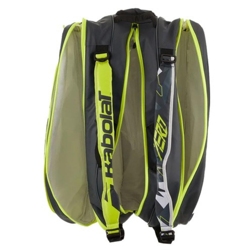 Чохол Babolat RH X12 PURE AERO для тенісних ракеток - це оптимальне рішення для професійних гравців. Здатна вмістити до 12 ракеток, ця сумка поєднує в собі сучасні технології та стильний дизайн. Її термоізольоване відділення виготовлене з екологічно чистої, перероблюваної тканини, яка не піддається фарбуванню, що робить її більш екологічною. Прозорий відсік для взуття забезпечує легке спостереження, зберігаючи пару в сухості та чистоті.