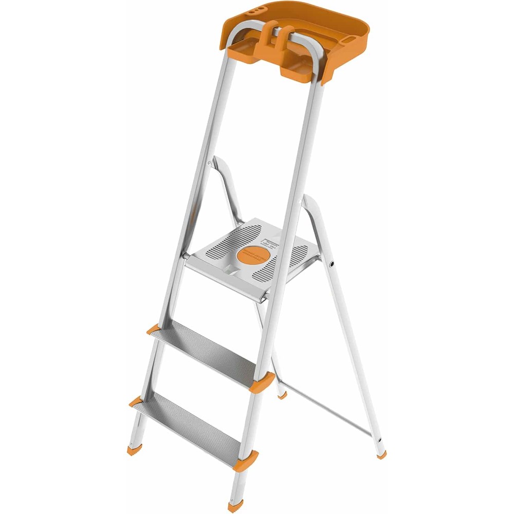 Сходи Colombo Attica на 3 сходинки (S108A03P) - це повністю алюмінієві сходи, які відповідають європейському стандарту EN131. Вони здатні витримати навантаження до 150 кілограмів. Комплектується міцним лотком для інструментів, що дозволяє закріпити необхідні інструменти на висоті під час роботи. Максимальне навантаження на лоток - до 5 кг. Завдяки цьому у вас завжди будуть під рукою всі необхідні інструменти для швидкого виконання робіт. Сходинки з алюмінію мають глибину 8 см, а рифлена поверхня забезпечує стійкість при підйомі і спуску. Безпечний механізм запобігає випадковому закриванню під час використання. Компактність конструкції дозволяє легко зберігати її, займаючи мінімум простору.