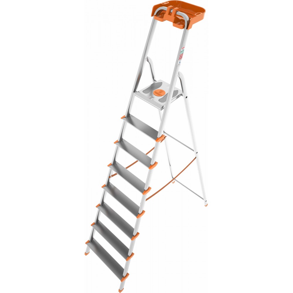 Драбина Colombo Attica на 8 щаблів (S108A08P) – це на 100% алюмінієвий виріб, який пройшов сертифікацію за стандартами EN131. Вона здатна витримати вагу до 150 кг. У комплекті йде надійний лоток для інструментів, що забезпечує комфортну роботу, дозволяючи кріпити та утримувати на висоті необхідний інструмент, сприяючи підвищенню ефективності роботи. Лоток витримує навантаження до 5 кг. Щаблі виготовлені з алюмінію і мають глибину 8 см. Рифлення на їхній поверхні забезпечує безпечний підйом та спуск, запобігаючи ковзанню. Спеціальний механізм безпеки захищає від випадкового складання під час роботи. Завдяки компактним розмірам, драбина займає мінімум простору при зберіганні.