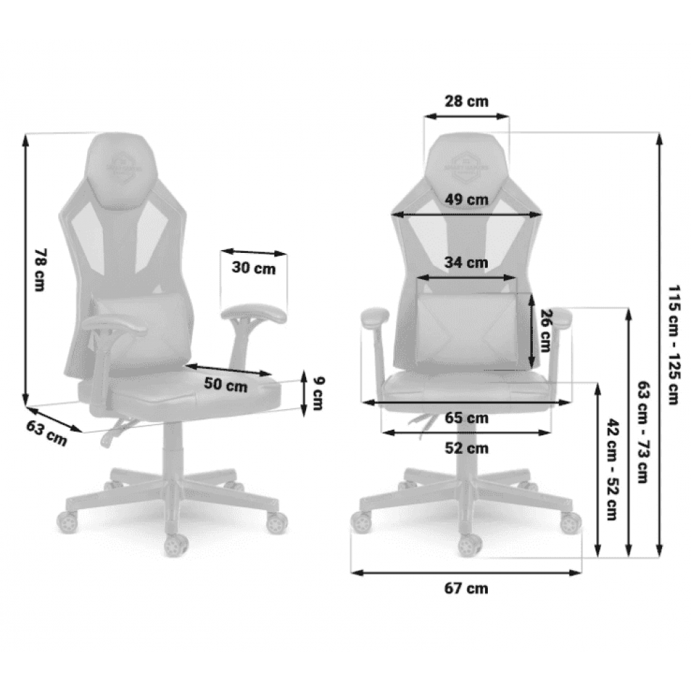 Основне сидіння і спинка забезпечують гарну підтримку і комфорт під час гри. Крісло має вбудовану підголовник і підлокітники, які забезпечують правильну позицію тіла і запобігають втрати енергії.