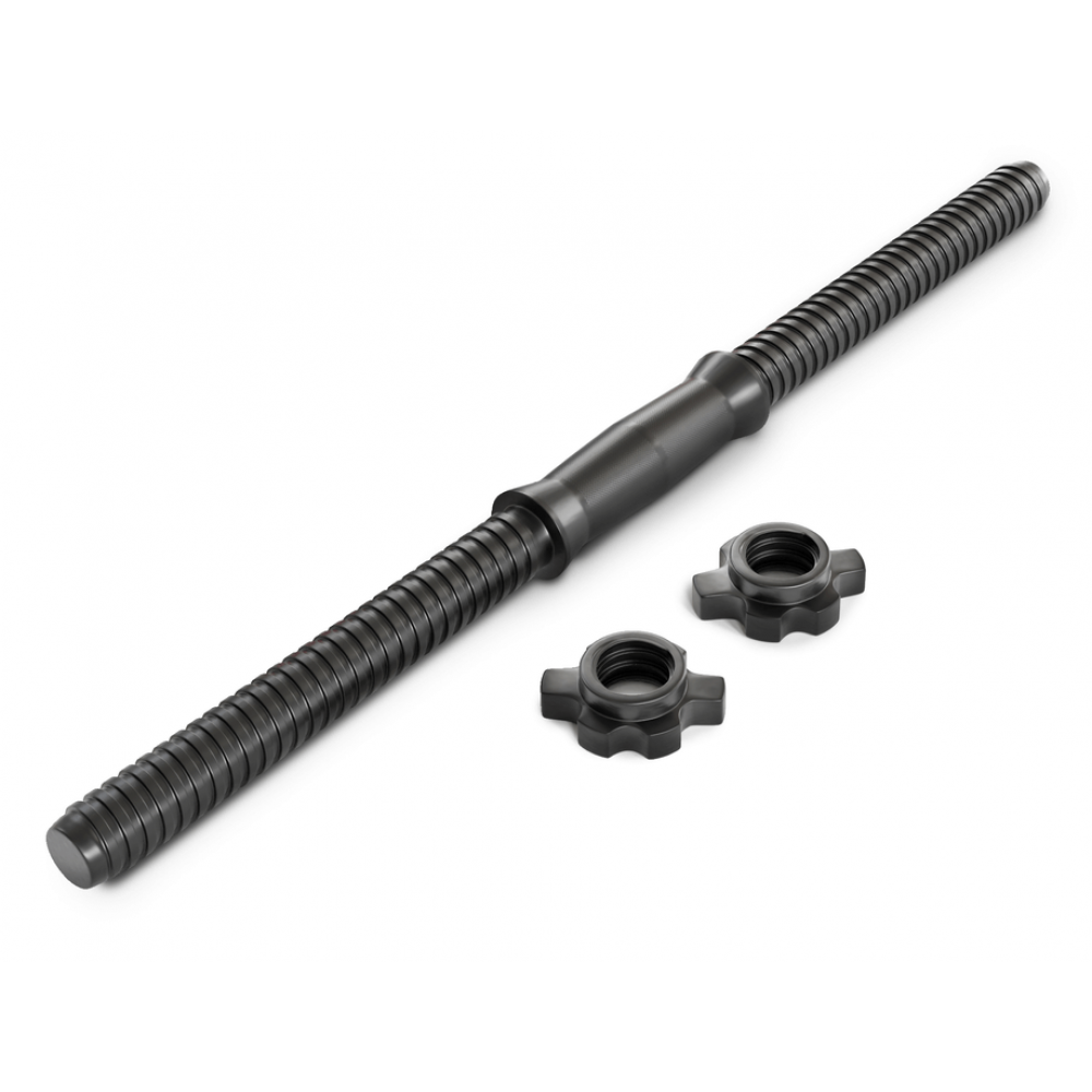 У комплекті гантелі TREX 20 кг передбачено прямий гриф із гвинтовими затисками для безпечної фіксації дисків. Довжина грифа 51 см, діаметр 25 мм. Основа виконана з металу та має захисне пластикове покриття. Ергономічні ручки з прогумованою поверхнею допомагають утримувати гриф впевнено, зменшують ковзання та підвищують комфорт під час вправ на біцепс, трицепс, плечі та груди.