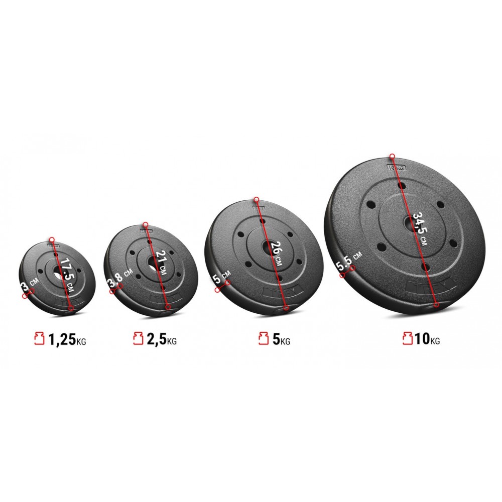 - 4 диски по 1,25 кг - діаметр - 17,5 см, товщина - 30 мм