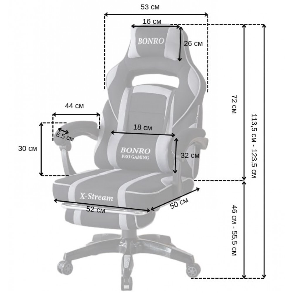 - Висота крісла: 113.5 - 123.5 см