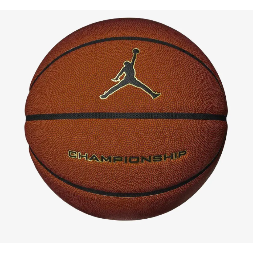 Баскетбольний м'яч Jordan Championship розміром 7, виготовлений зі шкіри та гуми, ідеально підходить для гри в залі, забезпечуючи максимальні результати. Завдяки м'якому матеріалу, м'яч зручний у використанні та ефективно відштовхує піт, що покращує зчеплення.
