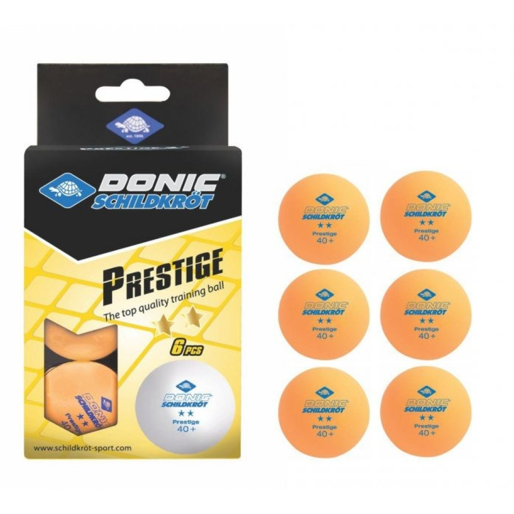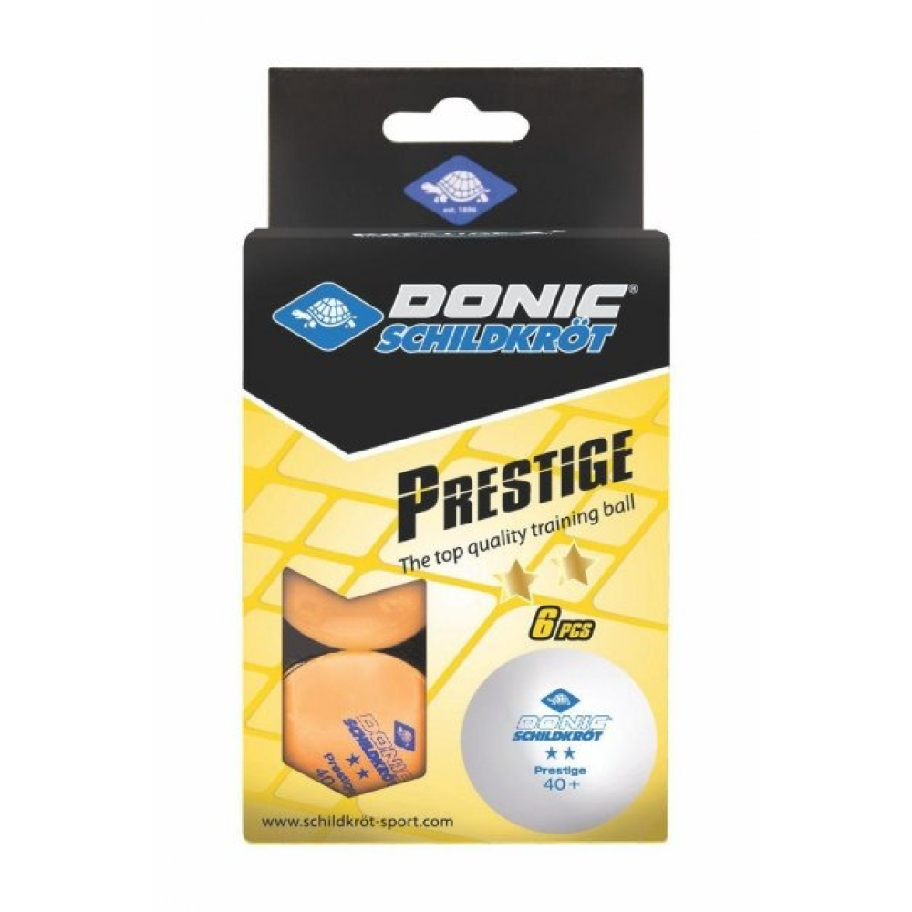 Пластиковий тенісний м'яч Prestige 2* призначений для проведення розважальних ігор та тренувань. У наборі знаходяться шість помаранчевих м'ячів. Починаючи з липня 2014 року, класичні м'ячі з целулоїду були замінені на пластикові еквіваленти в турнірах ITTF та поступово в багатьох провідних лігах. Пластикові м'ячі відзначаються більш екологічним виробництвом, зберігаючи однакові ігрові характеристики. Їхня відмінністю від целулоїдних варіантів є позначка «40+».