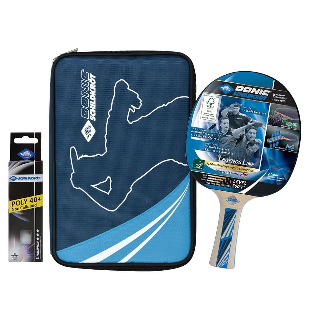 Преміальний подарунковий набір для настільного тенісу "Legends 700" від Schildkröt забезпечує високоякісний досвід гри завдяки продукції від Donic-Schildkröt. Цей комплект ідеально підходить як для початку гри, так і для амбіційного зростання у техніці. Він містить потужну ракетку Legends 700 з 2,0 мм губкою, стильний прямокутний чохол та три м'ячі вищої якості від Schildkröt: 3* Champion ITTF (40 мм, новий Polyball). Призначений для гравців з розвиненими навичками, які віддають перевагу швидкій грі з обертанням м'яча.