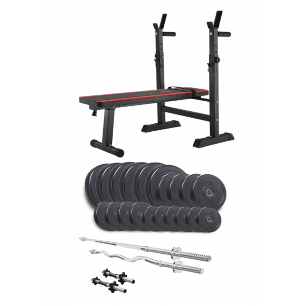 Набір спортивного обладнання Elitum Titan 115 кг з лавкою HS-1080 стане ідеальним рішенням для тренувань у домашніх умовах. Набір містить все необхідне для повноцінних силових тренувань і дозволить ефективно працювати всім групам м'язів. У наборі присутні диски, покриті ABS-пластиком, прямий і W-подібний грифи, а також гантельні грифи. Усі елементи набору характеризуються високою якістю виготовлення і довговічністю.