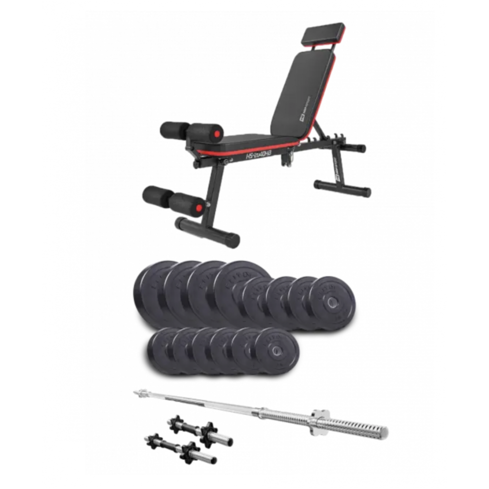 1 штанга, 2 гантелі та лава