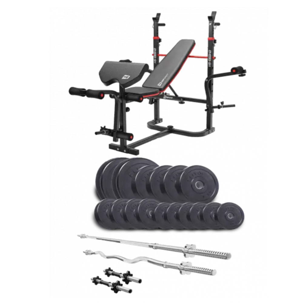 Набір також включає тренувальну лавку HS-1065HB Pro з регульованим кутом нахилу спинки. Це дозволить вам виконувати широкий спектр вправ і зміцнювати всі основні групи м'язів. Лавка виготовлена з високоякісних матеріалів і забезпечує безпеку і комфорт під час тренувань.