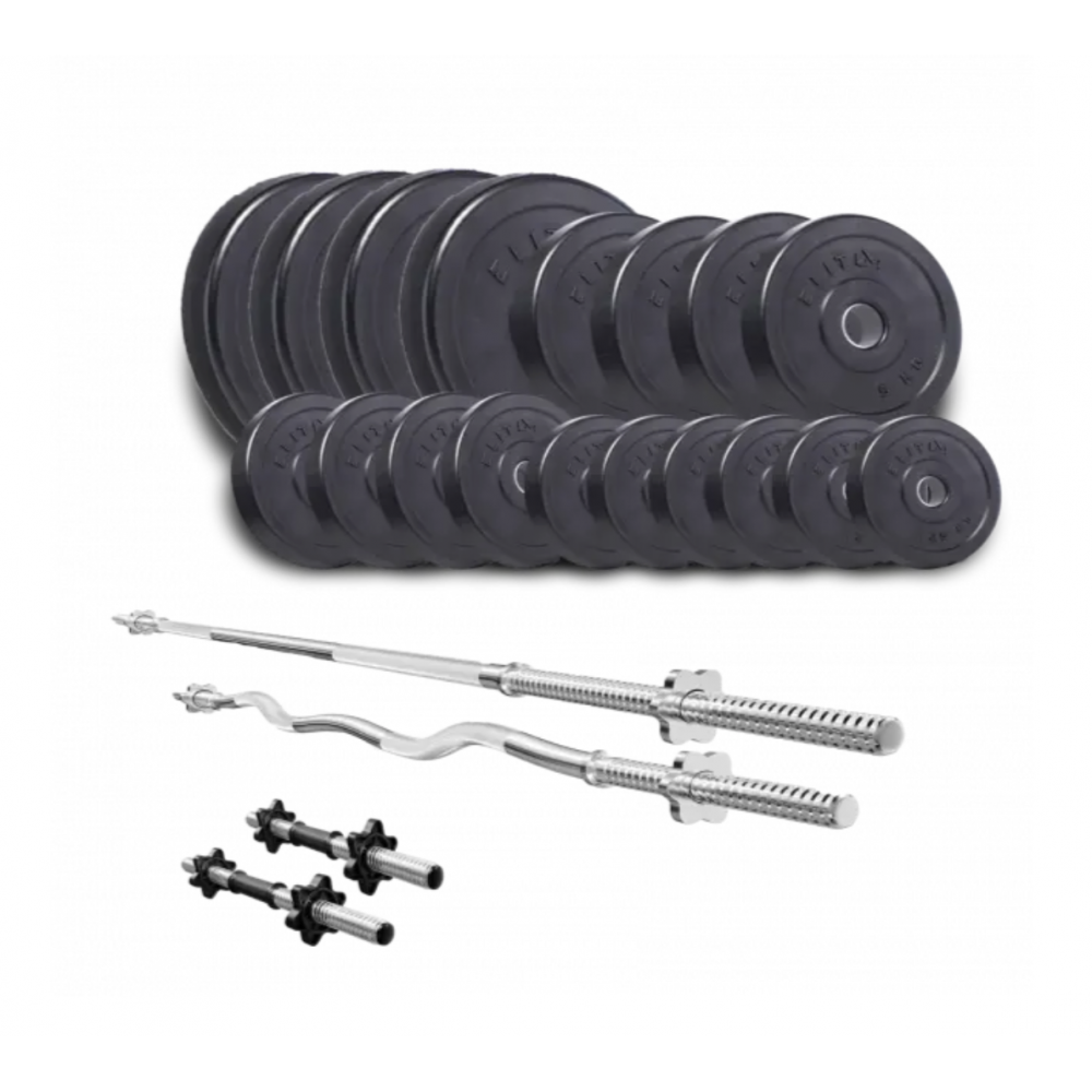 Набір складається з дисків, покритих ABS-пластиком, прямого, W-образного грифа і двох гантельних грифів. Висока якість виготовлення і довговічність деталей гарантує, що ваші тренування з даними набором будуть проходити комфортно, безпечно і з максимальною користю.