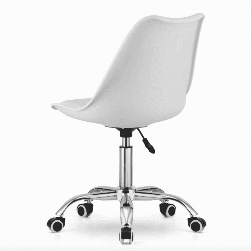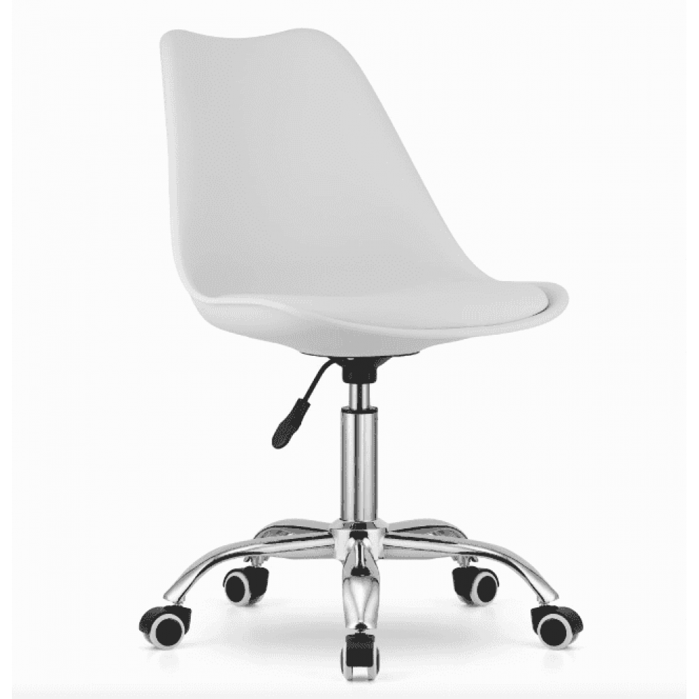 - П'ятиспицева хромована основа додає стабільності і запобігає перекиданню крісла при активній роботі. Конструкція надає можливість обертатися на 360 градусів, роблячи його зручним для офісного середовища та домашнього використання.