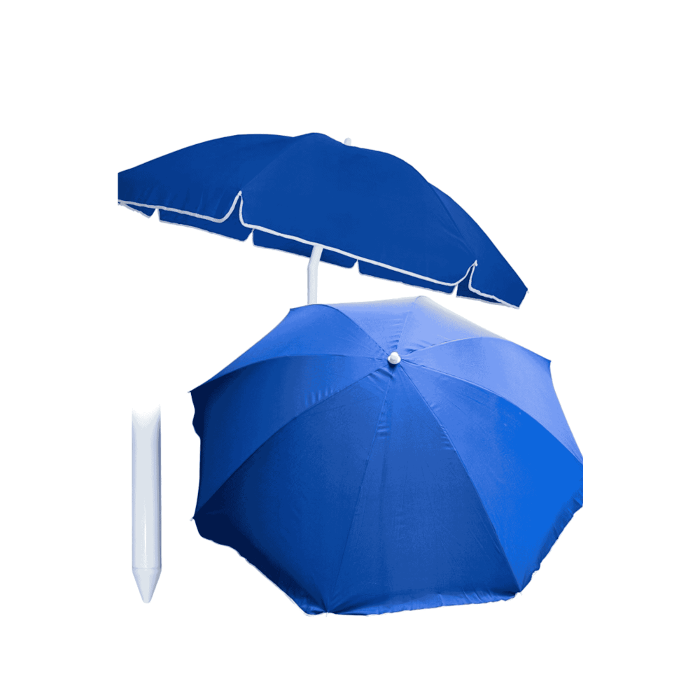 Парасолька має діаметр 240 см з трубою діаметром 2,8 см. Купол розділений на 8 секцій і підсилений сталевими спицями. Механізм розкладання та складання є інтуїтивно зрозумілим та легким у використанні. Парасолька оснащена системою нахилу стійки та загостреним наконечником, що дозволяє встановлювати її у пісок або ґрунт без додаткових підставок. Вона компактно складається і легко поміщається в багажник автомобіля.