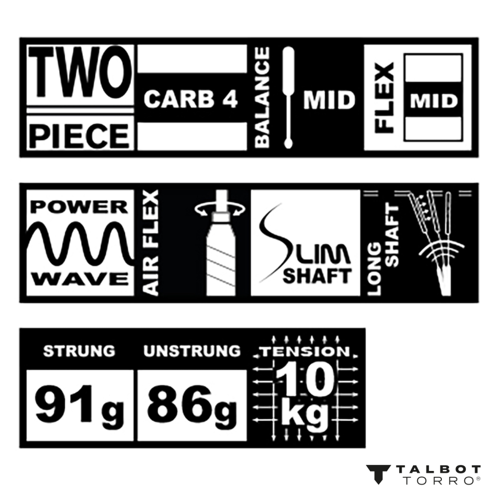 Talbot-Torro Isoforce 651 — це динамічна ракетка для багатоборства, створена для амбітних спортсменів, які прагнуть досягти більшого. Вона має тонкий обід та ручку, що забезпечують легкість та відмінну аеродинаміку. Завдяки подовженій на 1 см конструкції, ця модель має довгий корпус, що пропонує кращий важіль, підвищений тиск та потужність удару. Виготовлена з високоякісного графіту Carbon4, який перевищує класичний графіт за легкістю та жорсткістю. Преміум-дизайн включає двокомпонентну конструкцію для максимальної точності виробництва тонкого валу, який є легким і однаково гнучким у всіх напрямках. Ракетка важить трохи більше – 86 г без шнурів або 91 г зі шнурами – завдяки подовженій ручці, що робить Isoforce 651 потужною для гравців з високою технікою. Рекомендований максимальний натяг становить 10 кг.