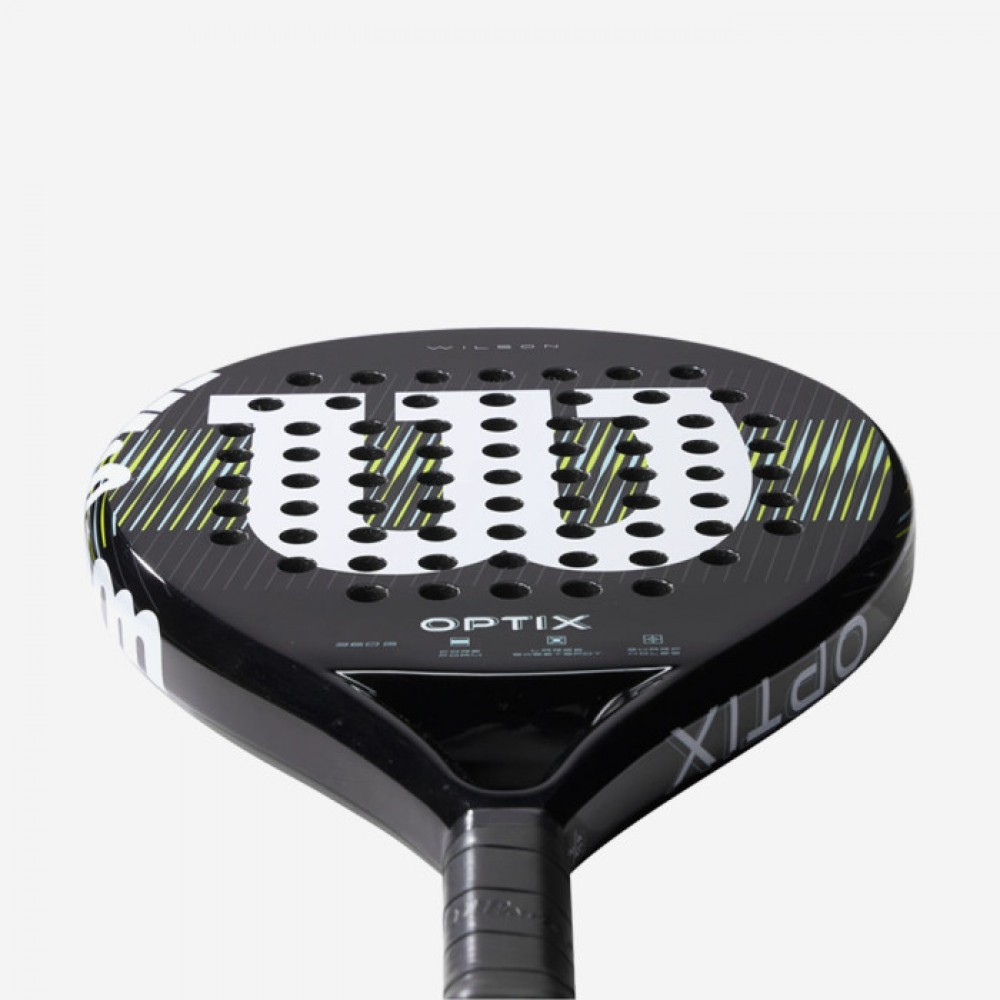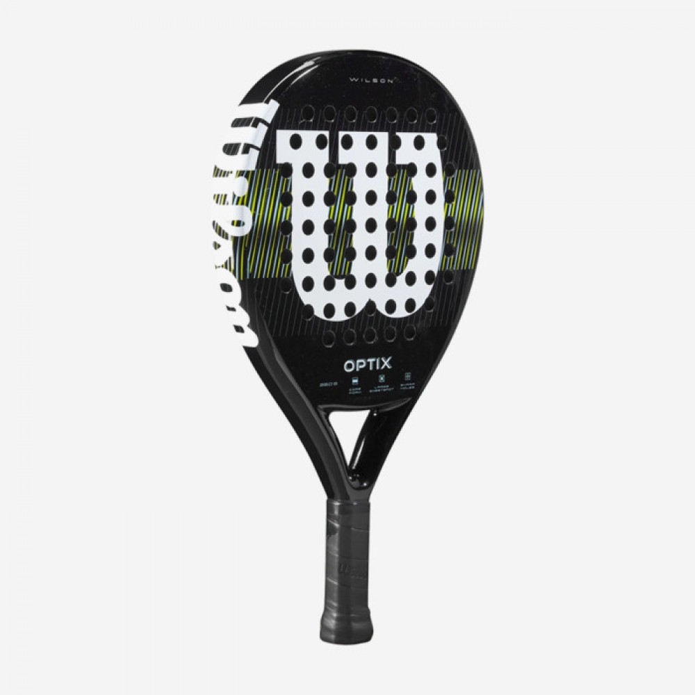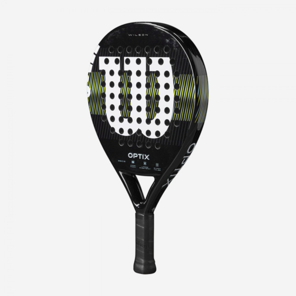 Ракетка для падел-тенісу Wilson Optix V1 - це відмінний вибір для початківців, які бажають швидко влитися в гру. Завдяки великим розмірам голівки, ця ракетка збільшує ударну поверхню, полегшуючи попадання м'ячів на корт. Рама з плетеним скловолокном надає стабільність і чуйність. Піна з невеликою щільністю в серцевині гарантує потужний, але м'який удар. Завдяки круглій формі, ракетка забезпечує стабільний контакт, а сучасна технологія обробки отворів підвищує її міцність. Wilson Optix V1 приваблює не лише своїми характеристиками, але й доступною ціною.