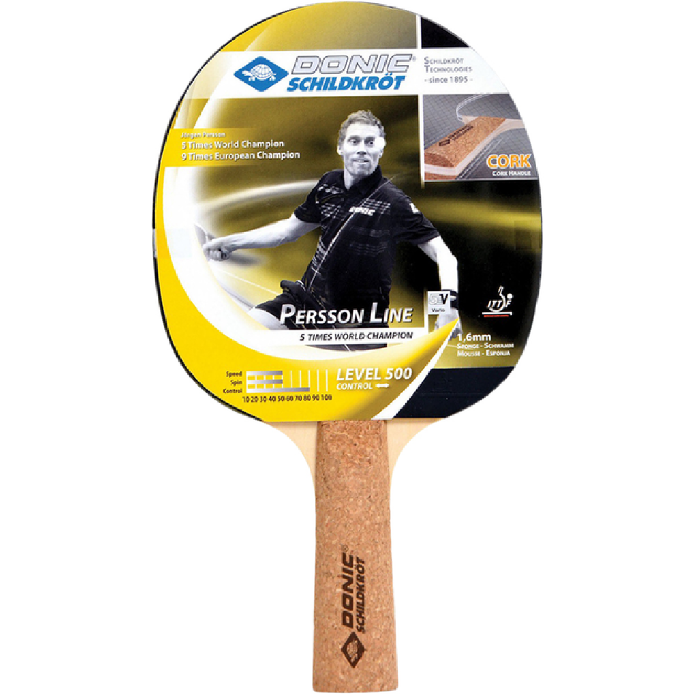 Ракетка для настільного тенісу Persson 500 від Donic-Schildkröt є ідеальним вибором як для відпочинку, так і для шкільних спортивних занять. Це чудовий варіант як для початківців, так і для досвідчених гравців. Високоякісні матеріали, зокрема деревина та рукоятка, забезпечують комфорт та довговічність. Ракетка обладнана гумою Schildkröt Elite, схваленою ITTF, що дозволяє ефективно використовувати різні техніки гри з м'ячем. Губка завтовшки 1,6 мм, яка розташована між гуми та дерев’яною основою, надає відмінний контроль над м’ячем. Рукоятка виготовлена з пробки, що забезпечує комфортне захоплення завдяки своїй високій еластичності. Пробка також добре вбирає вологу, запобігаючи ковзанню, і дозволяє надійно керувати ракеткою навіть у вологих умовах.