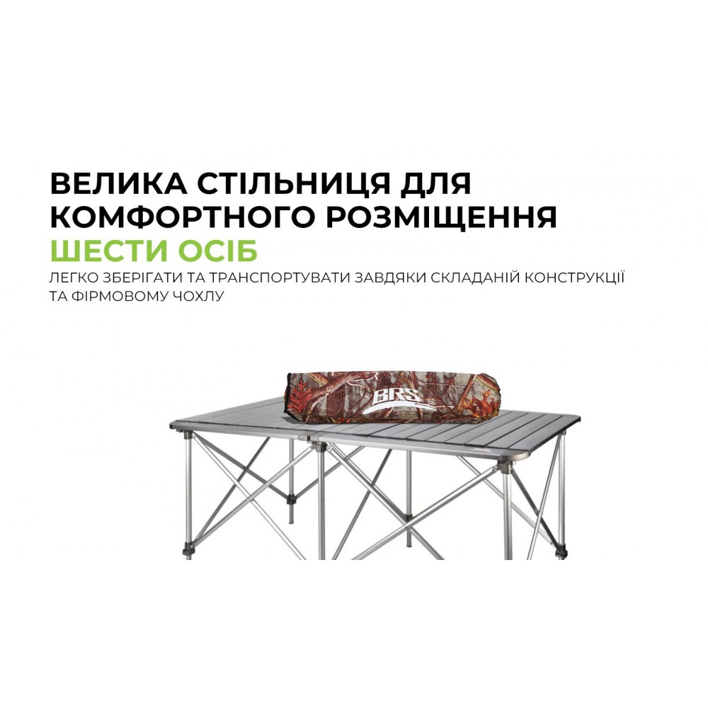 Портативный стол модели BRS-Z32 специально разработан для использования на свежем воздухе, обеспечивая комфортное место для еды для большой компании. В комплекте стол состоит из двух частей: основы и столешницы. Обе части легко складываются, изготовлены из легкого алюминиевого сплава, который устойчив к ржавчине и способен выдерживать значительные механические нагрузки, такие как падение или воздействие человеческого веса.