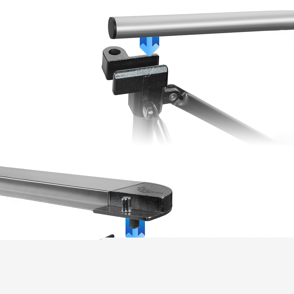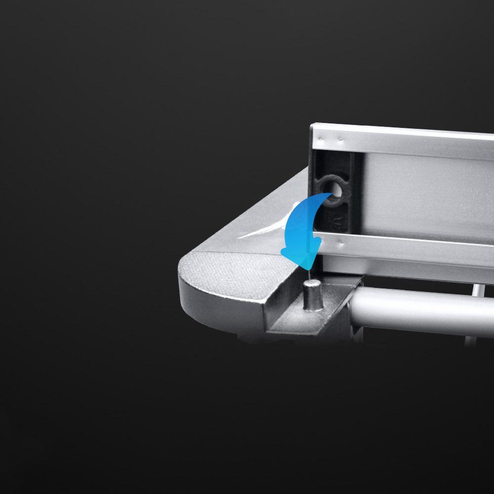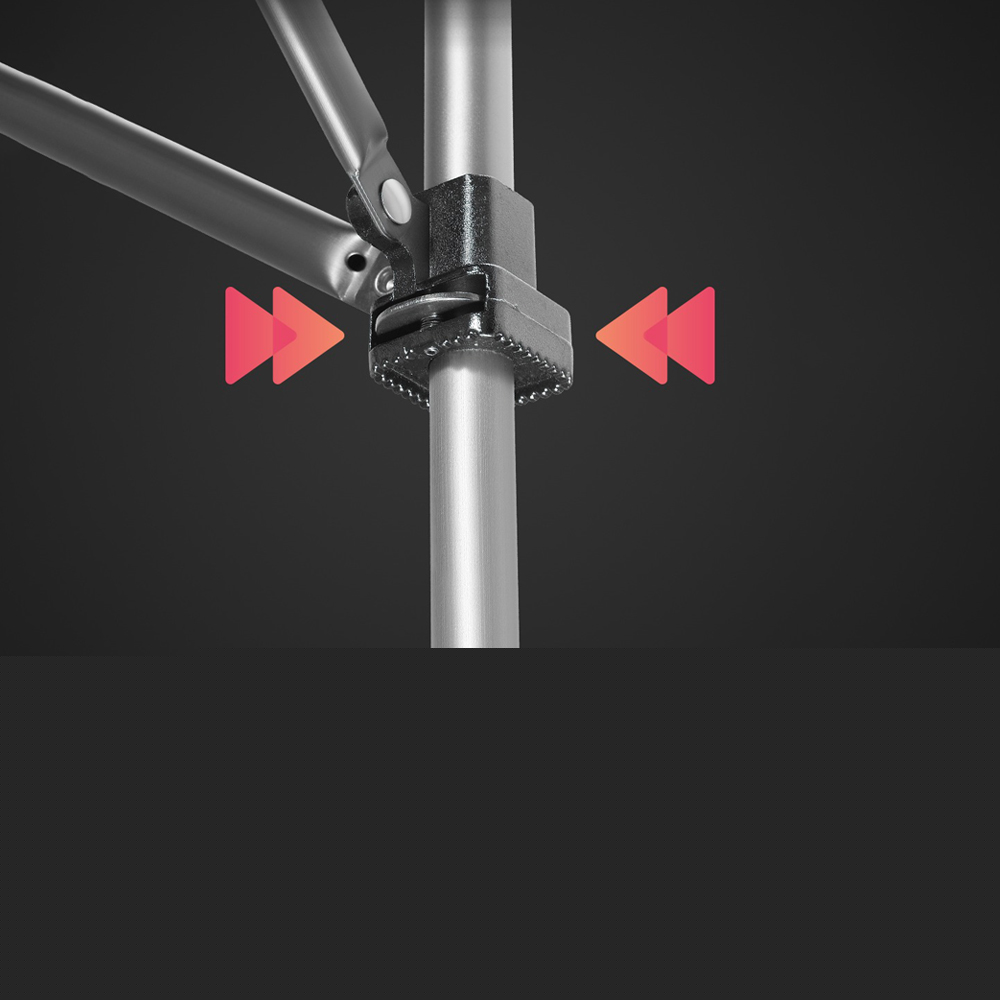 Основа стола поддерживается шестью ножками, соединенными с помощью регулируемых кронштейнов с автоматическим механизмом блокировки. Уникальной особенностью этой модели является возможность регулировать высоту каждой ножки отдельно в диапазоне от 47 до 77 сантиметров. Это позволяет удобно ставить стол на любую поверхность независимо от ее рельефа, предотвращая раскачивание конструкции.