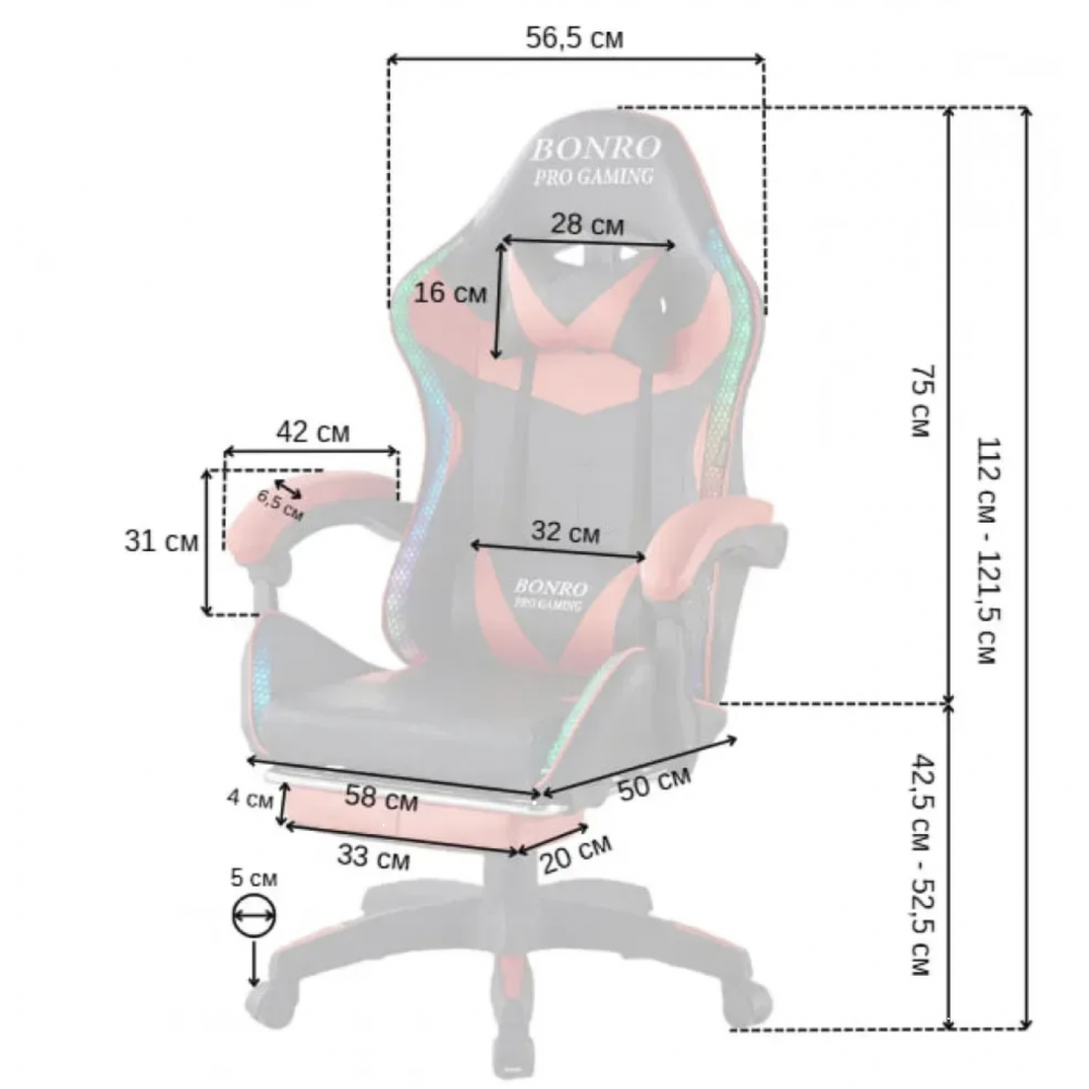 Игровое кресло Bonro B-144 - это практичное и стильное решение для игр и работы за компьютером. Модель сочетает удобную посадку, RGB LED-подсветку и массажную поясничную подушку с регулировкой, чтобы вы могли комфортно проводить длительные сессии без лишнего напряжения.