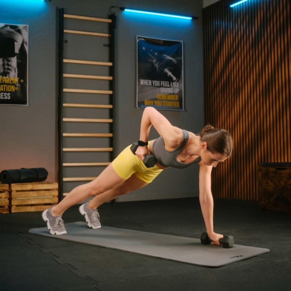 Шестигранная форма препятствует прокручиванию гантелей на полу и добавляет безопасности. Также их можно использовать как опору для некоторых вариантов отжиманий и функциональных упражнений, разнообразя тренировки.