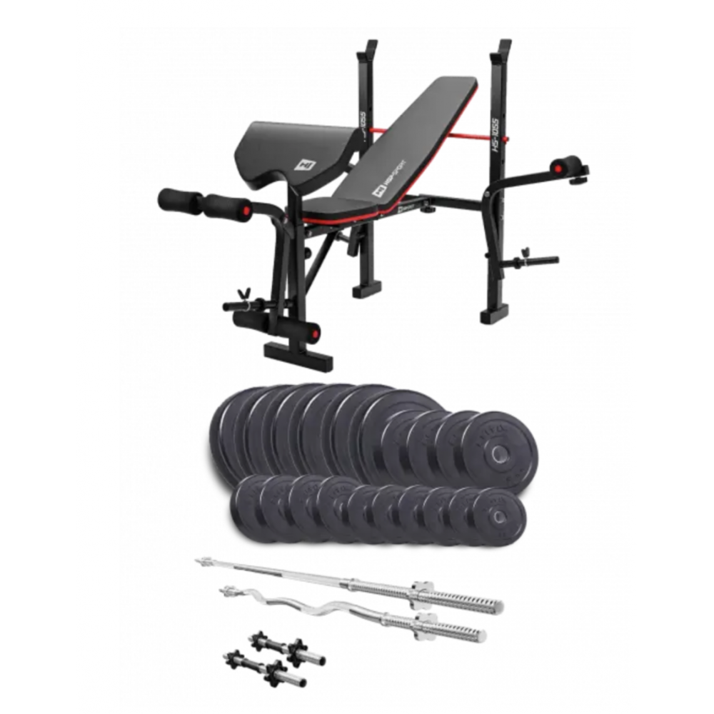Набор состоит из дисков, покрытых ABS-пластиком, прямого, W-образного грифа, двух гантельных грифов и тренировочной скамьи HS-1055 Pro. В этом наборе есть все, чтобы организовать дома полноценные силовые тренировки. Высокое качество изготовления и долговечность деталей гарантирует, что ваши упражнения с данным набором будут проходить комфортно, безопасно и с максимальной пользой.