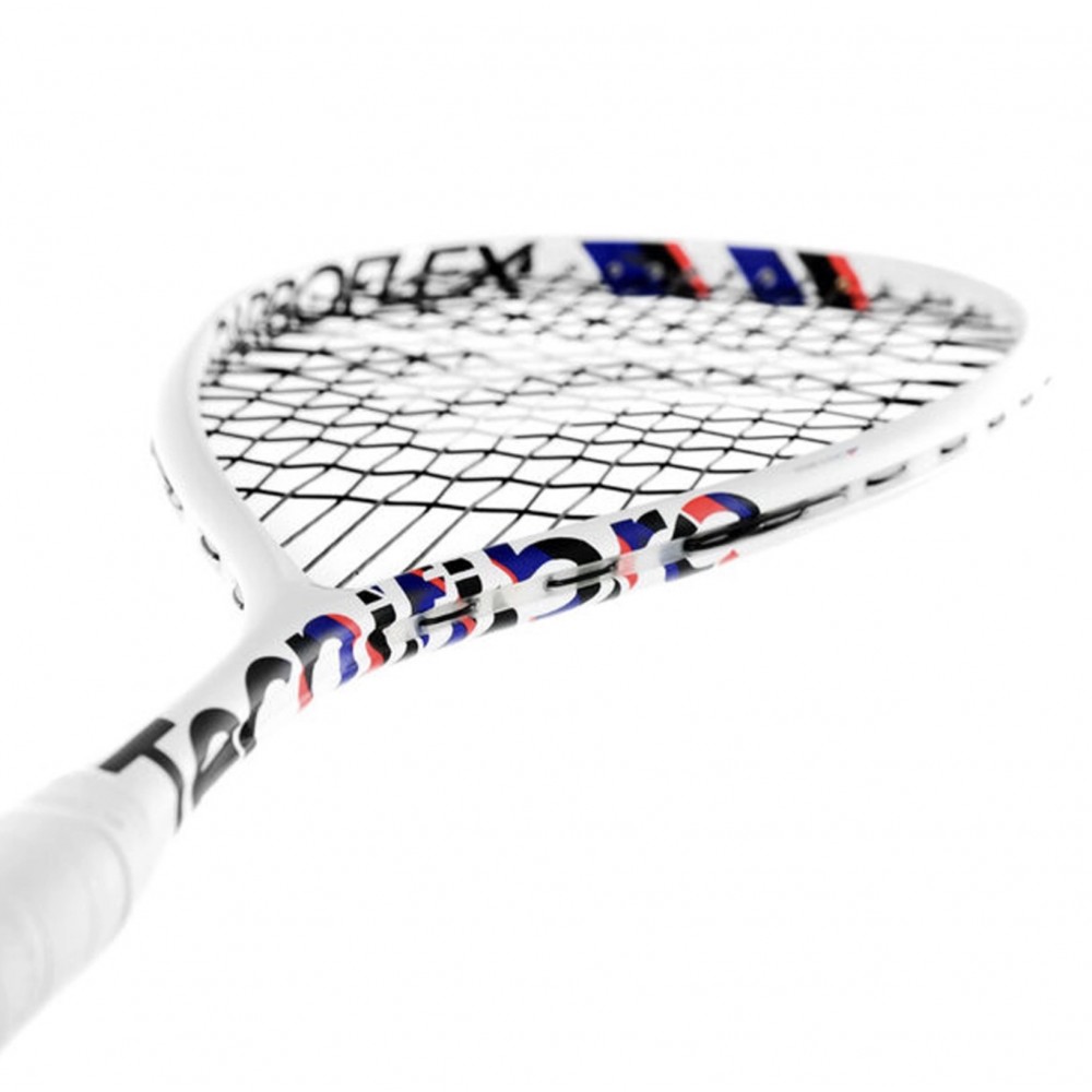 Ракетка для сквоша Tecnifibre Carboflex X-Top 130 выбирается ведущими игроками для турниров. Этот высокоэффективный инструмент идеально подходит как для любителей, так и для профессиональных спортсменов, стремящихся к максимальной мощности вместе с отличной управляемостью. Благодаря легкому весу (130 г) она обеспечивает легкое управление и динамичную игру. Мощность ракетки усиливается размером головы 500 см² и мультифиламентными струнами Dynamix V.P., которые в линейке Tecnifibre являются самыми мощными. Конструкция ракетки обновлена с использованием технологии «Airshaft» для улучшения аэродинамики и ускорения движения головы. Усиленные обода с обеих сторон сухожилиями «X-Arms» ограничивают гибкость, обеспечивая стабильность и точность удара. Для увеличения сцепления и устойчивости к ударам, которые приходятся вне центра, использована технология "Extended String hole": 12 специально увеличенных отверстий в определенных точках на раме (на 3, 9 и 12 часах) позволяют струнам дышать и повышают их эластичность.