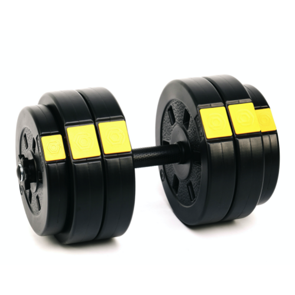 Основу комплекта составляют 8 дисков по 5 кг - это практичная база для силового тренинга, когда нужен рабочий вес без постоянных долгих перенастроек. Вы тратите меньше времени на смену конфигурации гантели и больше - на сами подходы. Дополнительные 4 диска по 2,5 кг помогают точнее подстраивать нагрузку под технику, изоляционные упражнения и постепенное увеличение веса.