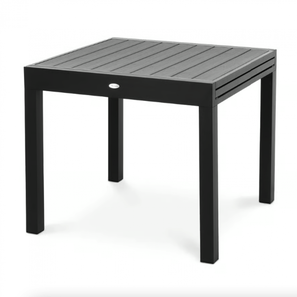 Стол стиля и устойчивости, Comlo адаптируется к любому экстерьеру. Черный алюминиевый каркас надежно защищен от коррозии и ультрафиолета, обеспечивая долговечность и легкость в транспортировке.