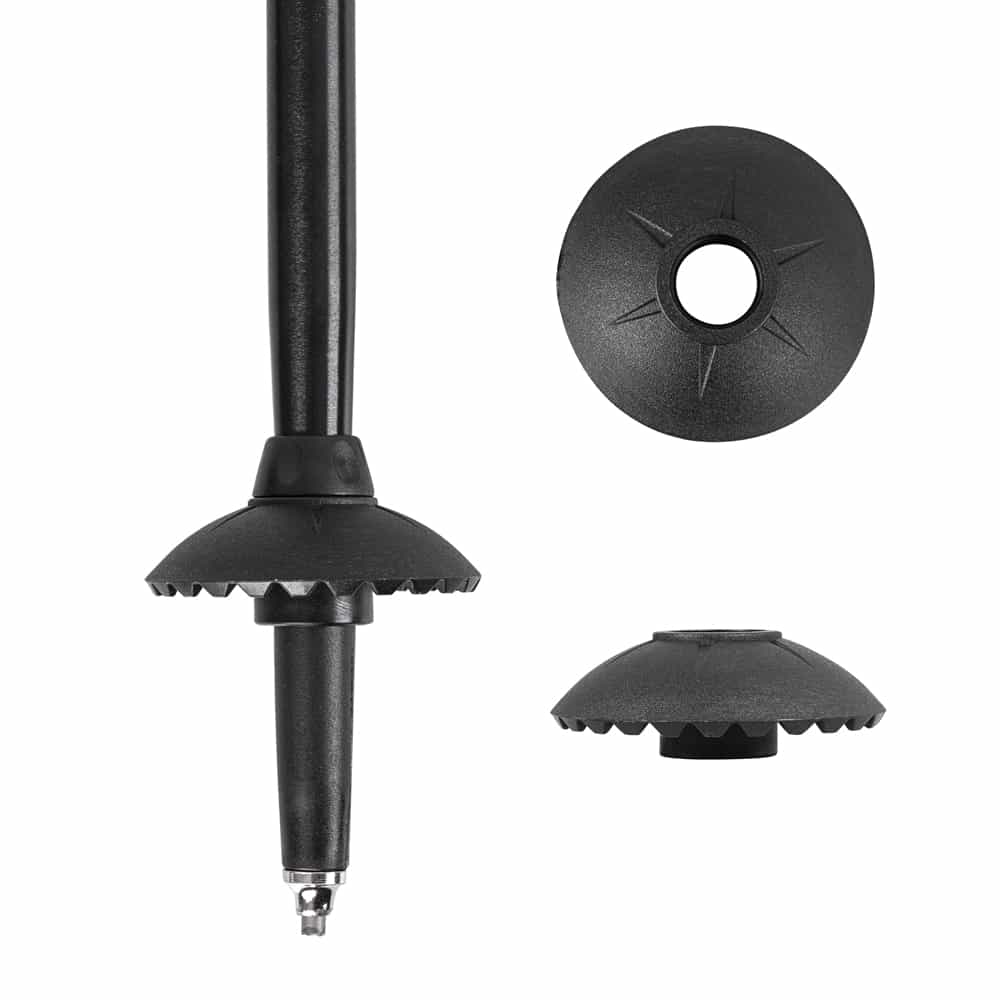 - Наконечники: Палки могут быть оборудованы различными типами наконечников, такими как резиновые для асфальта или карбидные для грунта и скал.