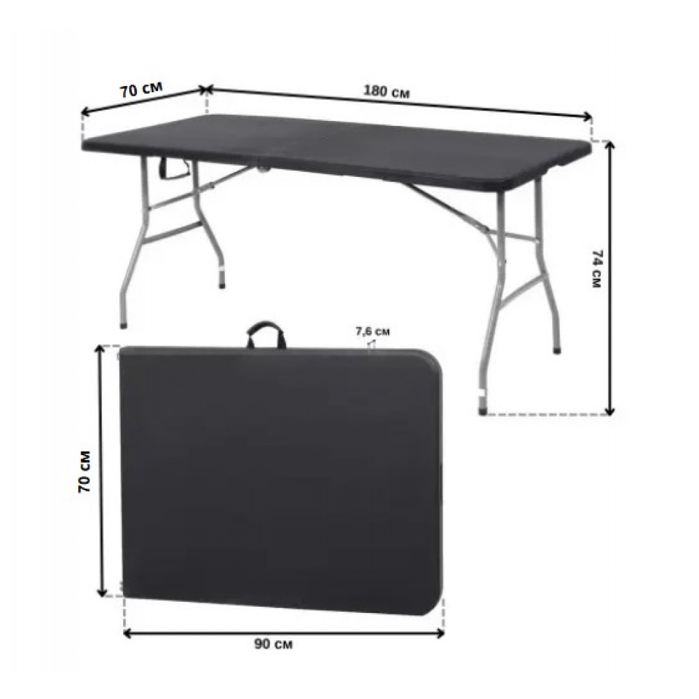 Це рішення стане в нагоді як на пікніках, так і на офісних зустрічах чи комерційних подіях. Стіл стійкий до різних погодних умов, тому відмінно працює на будь-якій поверхні від рівного підлоги до кам'янистого ґрунту. Додаткові блокатори запобігають випадковому складанню столу.