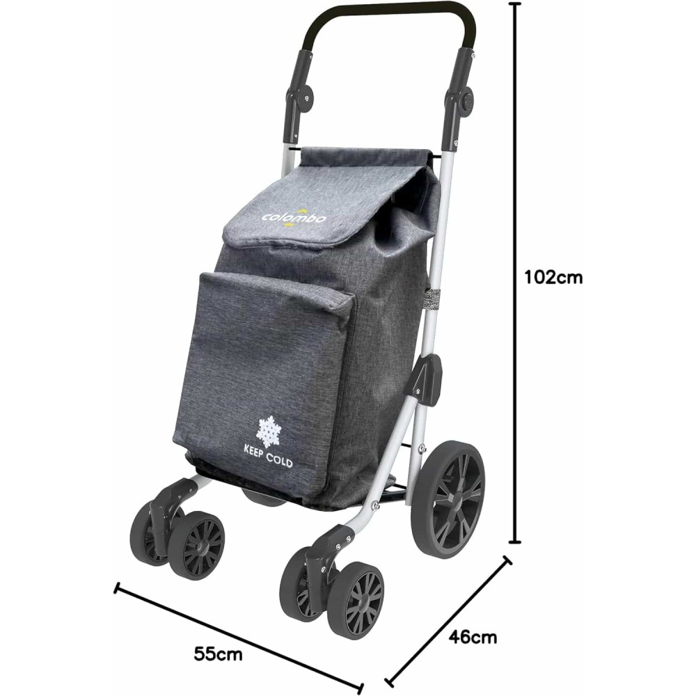 Сумка-візок Colombo Troll (CRA006) поєднує такі переваги, як легкість, міцність, стійкість та компактність. Завдяки чотириколісній системі, цей візок забезпечує стабільність, маневреність і можливість пересування перед вами. Шасі має чотири точки опори, що робить сумку-візок дуже стійкою і дозволяє використовувати її як додаткову опору при ходьбі.