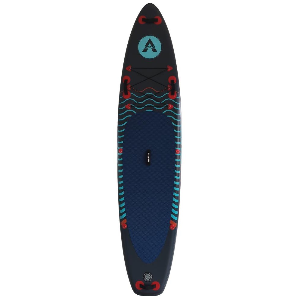 • Матеріал: PVC Drop Stitch + EVA (Drop Stitch забезпечує жорсткість і міцність, а EVA додає зчеплення, комфорту та безпеки. Разом це створює надійну поверхню для катання і тренувань на воді)