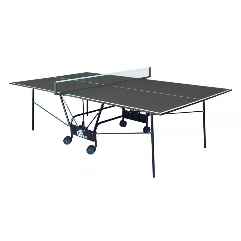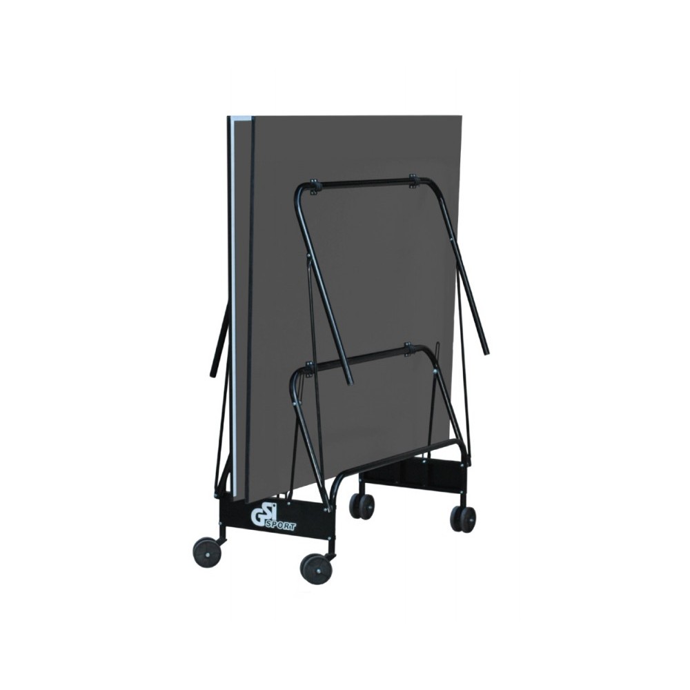 Тенісний стіл GSI-Sport Compact Light (графітового кольору) призначений для використання в закритих приміщеннях. Ігрова поверхня виготовлена із спеціальної древесностружкової плити (ДСП) товщиною 16 мм, яку покрито антибліковим пластиковим шаром графітового кольору. Конструкція столу базується на компактному візку, виготовленому з металевого трубчастого профілю діаметром 25 мм, який має поліефірне покриття. Особливістю столу є можливість проведення тренувань поодинці. Завдяки 4 здвоєним колесам діаметром 107 мм, з яких 2 є маневреними, стіл можна легко переміщати. У комплекті сітка для гри.